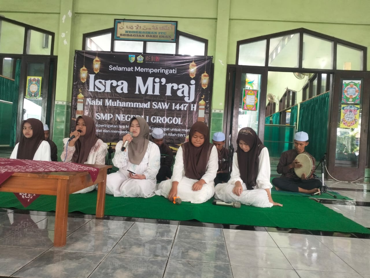 SMPN 1 Grogol (Sigro) sukses menyelenggarakan rangkaian peringatan Isra Mi'raj Nabi Muhammad SAW 1447 H. Kegiatan yang berlangsung selama dua hari ini tidak hanya menjadi momentum refleksi spiritual, tetapi juga wadah bagi siswa untuk menunjukkan bakat dan kreativitas dalam bidang keagamaan.